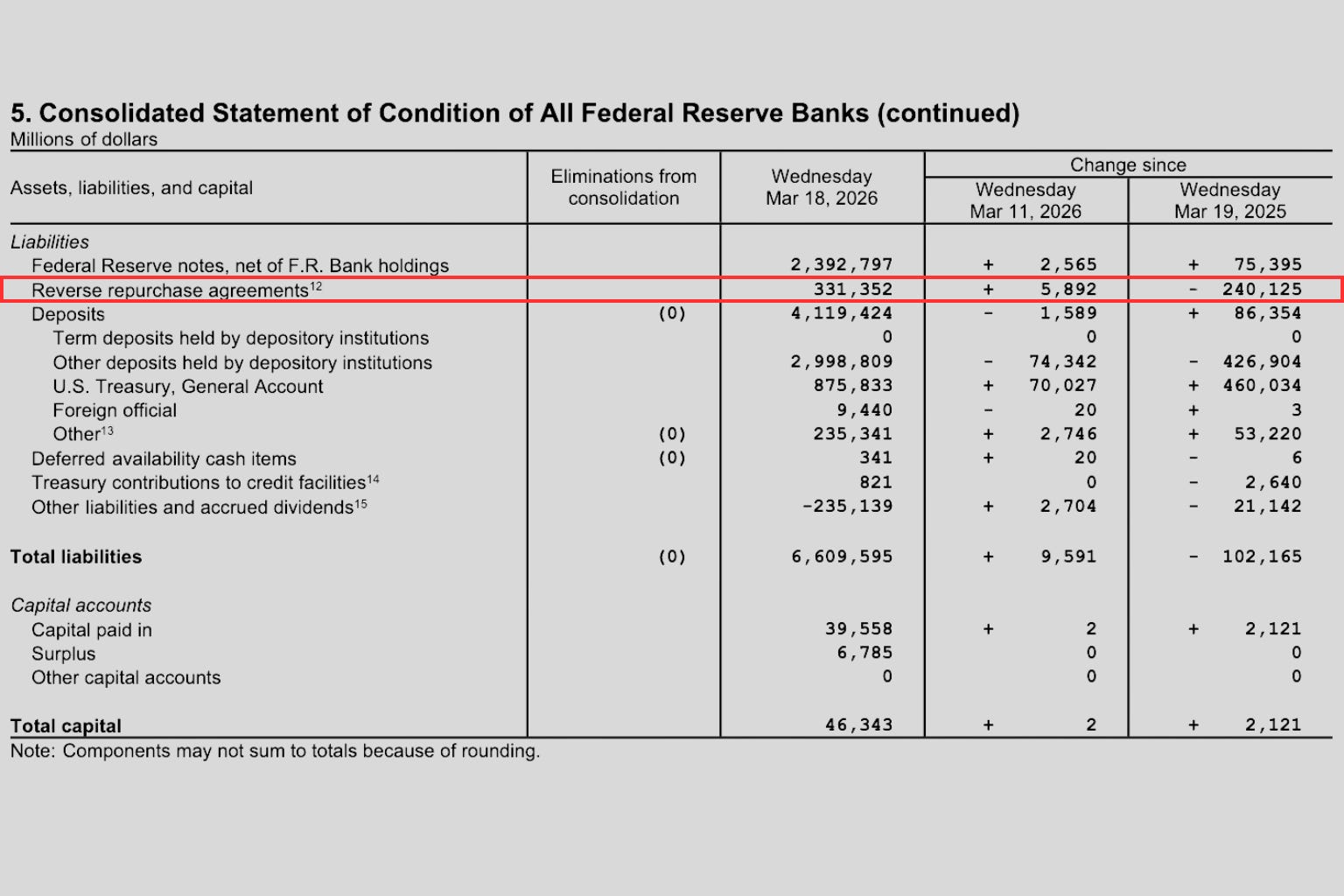 The timing is the tell. The middle of March is when quarterly estimated tax payments are due. Businesses, self-employed workers, and individuals with significant non-wage income all file and pay in the same window. For the week of March 18, that seasonal effect shows up precisely where you’d expect it on the balance sheet. This isn’t a policy decision by the Federal Reserve. It’s a calendar.