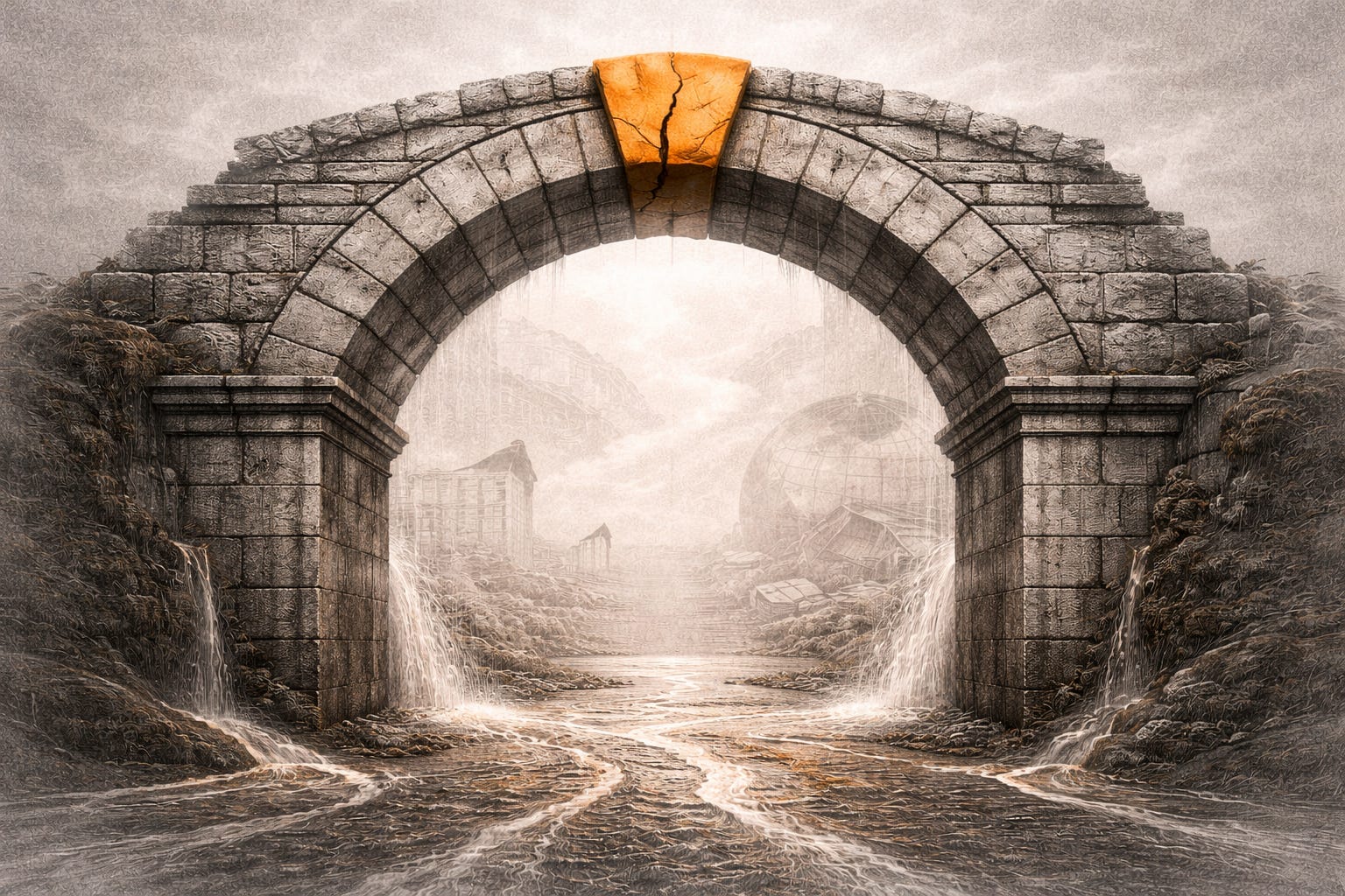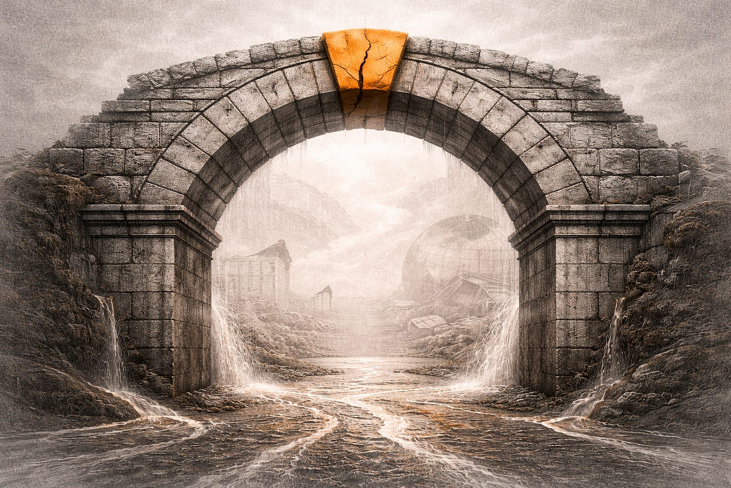 Think of it this way: the entire post-1971 financial architecture is an arch — massive, ornate, seemingly permanent. The petrodollar is the keystone at the top. The arch can be impressive in every direction. But pull the keystone, and everything above it comes down.